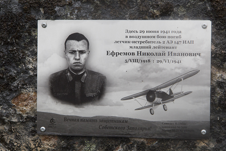 На месте был хороший огромный камень, куда мы и прикрепили табличку. Хороший памятник получился у Николая Ефремова: Летчик был установлен по номеру двигателя самолета И-15бис - №1910259.
