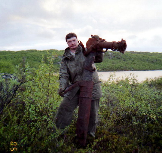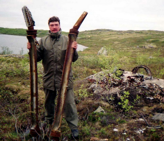 Неизвестный Юнкерс 88, судя по штампованному креслу А-4. Упал в 10 км севернее флотских аэродромов Ваенга-1 и Ваенга-2 на берегу озера Ретинское-1. От самолёта ничего не осталось, так как рядом проходит дорога на Полярный. Фото предоставил Бидненко Юрий. 2005 год.