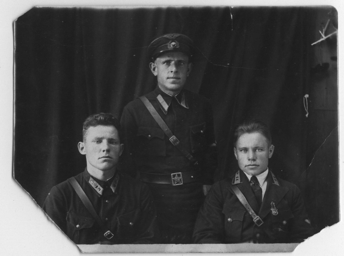 На переднем плане (слева направо) Николай Николаевич Суровов, Василий Васильевич Меньшиков, Тимофей Васильевич Соболев.